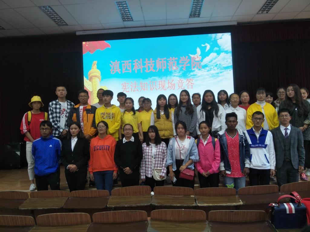 为宣传宪法知识,弘扬宪法精神,切实加强广大学生尊重宪法、维护宪法的意识。我校于2018年11月25日组织开展宪法知识现场竞赛,此次竞赛活动由学务处主办,校大学生自律委承办,来自各学院的12支队伍36人参加了竞赛。