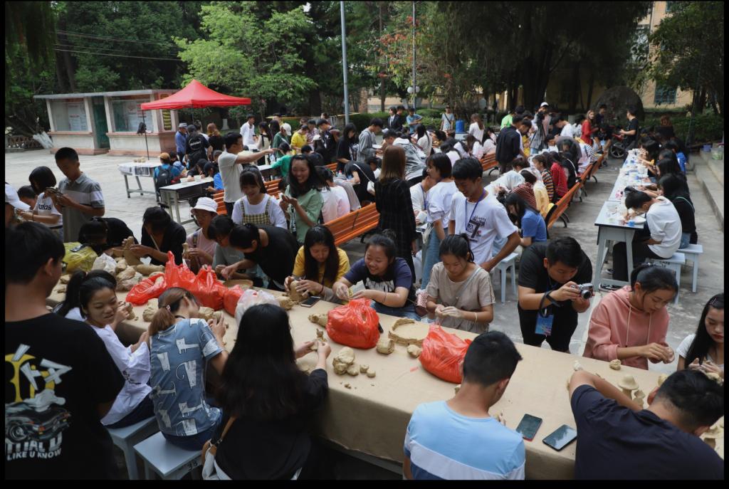 大赛分设自由成型类、工具成型类、陶瓷装饰类三个比赛项目,来自全校243名同学报名参赛,参赛者们热情高涨,充分发挥自己的创造力和想象力,以泥巴和简单釉色料为媒介,创作出一个个创意新颖、生动有趣的陶艺作品。比赛还特邀了云南省级非物质文化遗产传承人邓安康师傅和赵兴发师傅莅临现场进行拉胚技艺展示和指导。