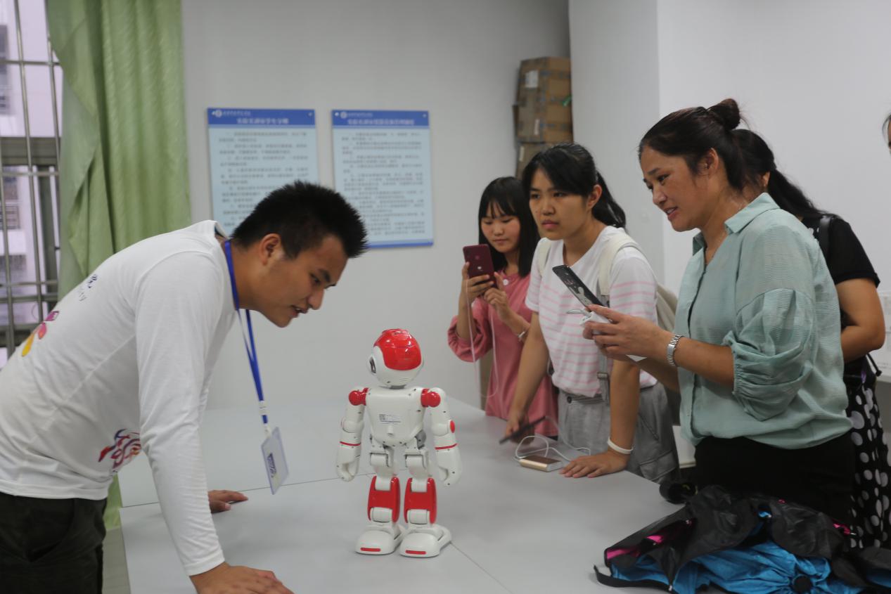 8月26日晚,智能与信息工程学院组织2019级部分新生家长参观专业实验实训室,家长们兴致勃勃参观了仿人机器人、无人机、甲骨文大数据学院等实训室。