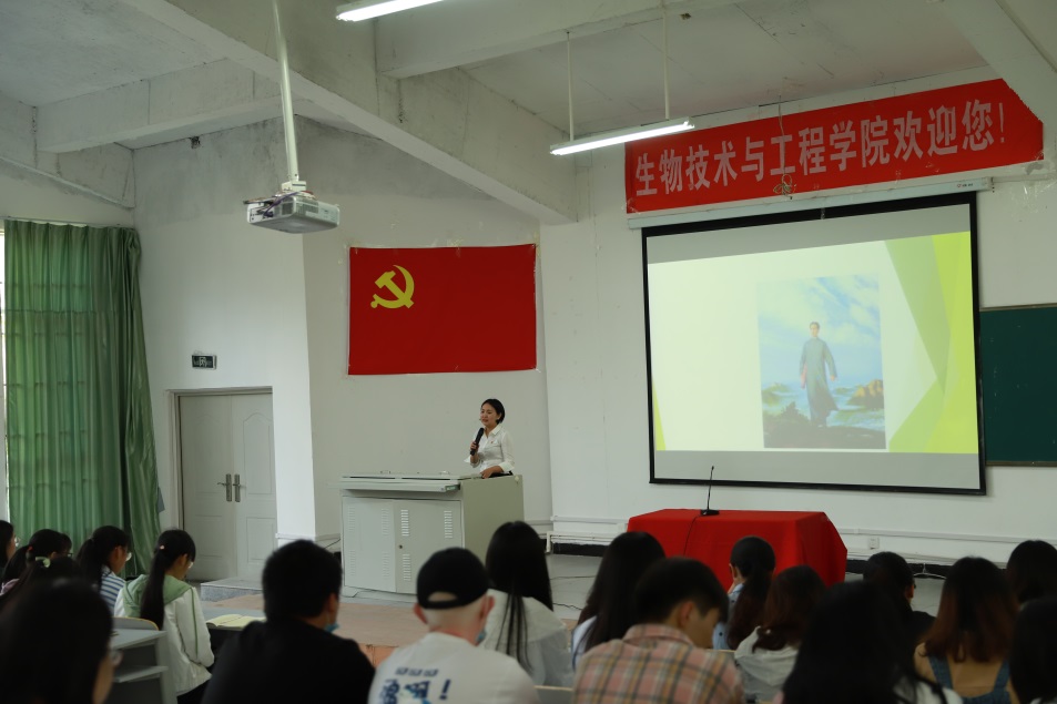 宣讲首先以毛泽东的成长历程为主线,结合党史国史引导同学们不忘国耻爱国奋发,再通过脱贫攻坚战和抗击新冠肺炎疫情人民保卫战这两场战役的叙评,启发同学们思考这个时代需要什么样的英雄,结合所学专业,什么才是对时代和国家有价值的事,最后,鼓励同学们牢记习近平总书记对广大青年的要求:爱国、励志、求真、力行,寄语青年大学生理清自己的奋斗目标,脚踏实地、仰望星空,为实现中华民族伟大复兴中国梦努力奋斗。