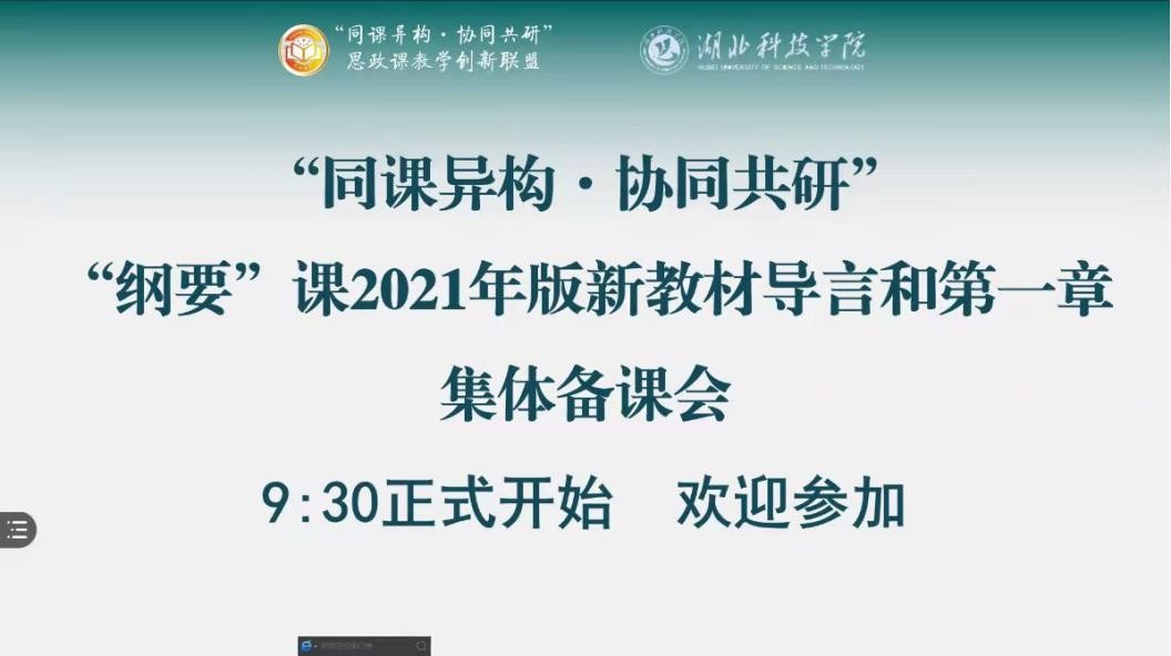 9月25日,由华中师范大学马克思主义学院“同课异构·协同共研”思政课创新中心主办、湖北科技学院马克思主义学院承办的“纲要”课2021版新教材集体备课会在“腾讯会议”云端举行,我校马克思主义学院组织思想政治理论课教师参会学习。