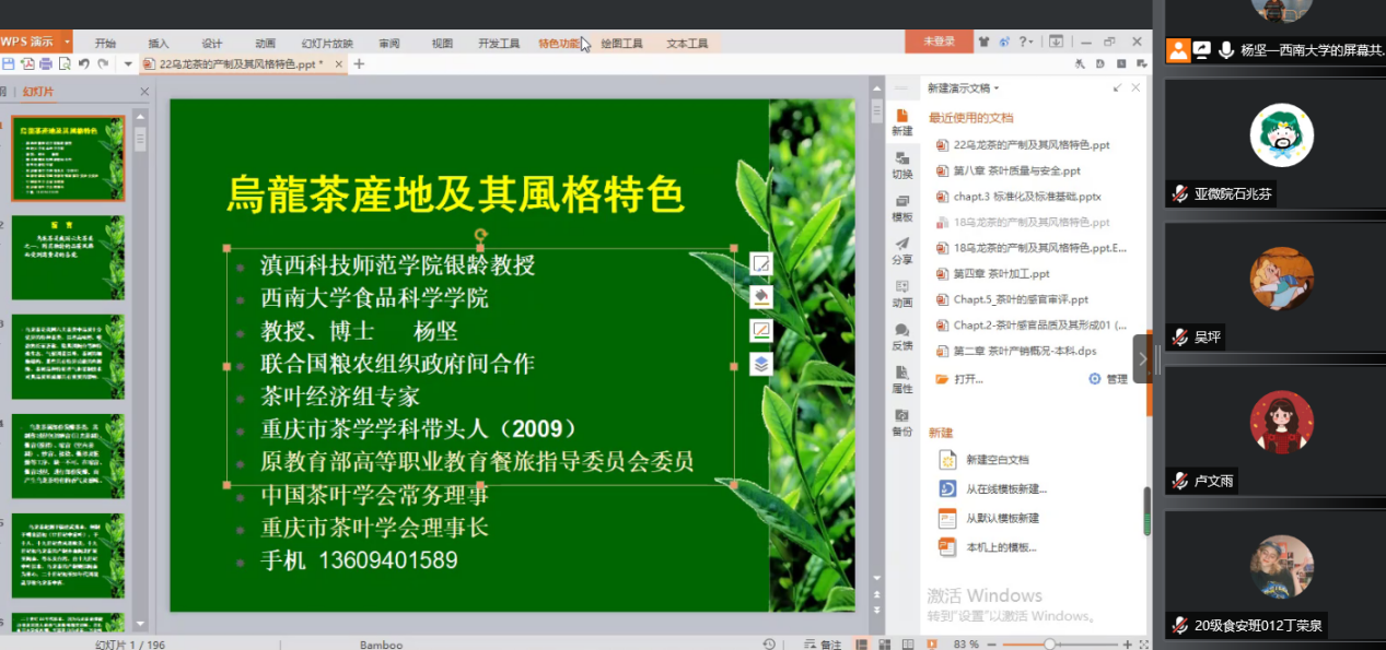 活动邀请了中国茶叶协会常务理事、西南大学食品科学学院教授,现聘为球友会(中国)生物技术与工程学院银龄计划教师杨坚教授作“乌龙茶产地及品质风格”专题讲座。邀请生物技术与工程学院学生第二党支部书记、滇院茶艺社指导教师、茶学专业教师张焱珍副教授作“茶席插花鉴赏”讲座。