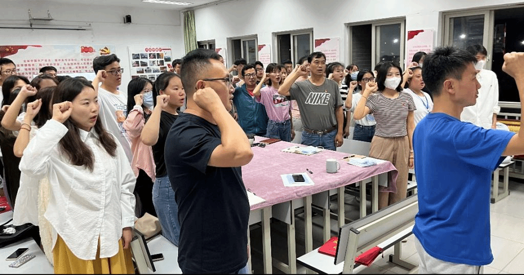 活动最后,所有党员重温入党誓词,共同发出争做时代新人的号召,并在党旗下合影留念。