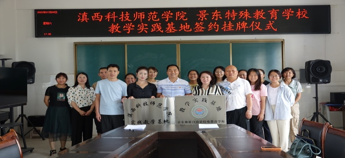 近日,教师教育学院分管实践教学领导、特殊教育专业负责人一行前往祥云县特殊教育学校、楚雄州特殊教育学校、丽江特殊教育学校和景东县特殊教育学校进行合作交流,并完成与四所特殊教育学校实践教学基地签约与授牌仪式。此次校校合作,有效充实了特殊教育专业实习实训平台,对特殊教育专业师资培养产生积极助推作用。