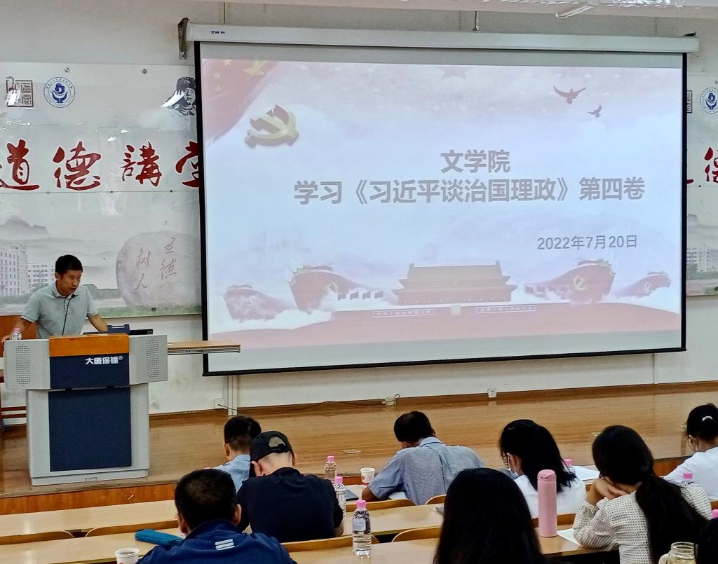 7月20日,文学院迅速行动,先学一步,及时购买发放《习近平谈治国理政》第四卷,并召开全体教职工会议集中学习。