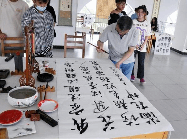 活动中,师生们挥毫舞墨、笔走龙蛇,即兴创作了多幅书法作品,涉及行、隶、草等多种书法体。篆刻作品刀法娴熟精巧,质文并重,意态生动。创作现场大家相互交流,共同探讨基础书法篆刻知识和创作心得,并就各自创作的作品进行了交流,现场活动情绪热烈,气氛高涨。现场学生在一睹风采之余,也纷纷向老师们求字求技。