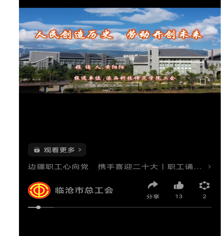 近日,我校工会上报的诵读视频入选了由临沧市总工会举办的“边疆职工心向党 携手喜迎二十大”职工诵读活动展播。